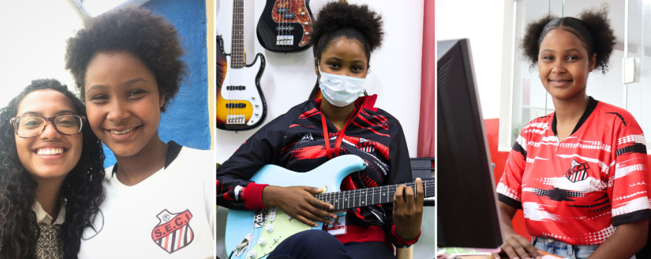 Sua trajetória no Instituto começou nas antigas aulas de informática, capoeira, percussão e rima; com o passar dos anos, Alice acompanhou as transformações do próprio SECI e passou a integrar também as atividades que hoje fazem parte dos nossos projetos, como futebol, teclado, bateria e guitarra.